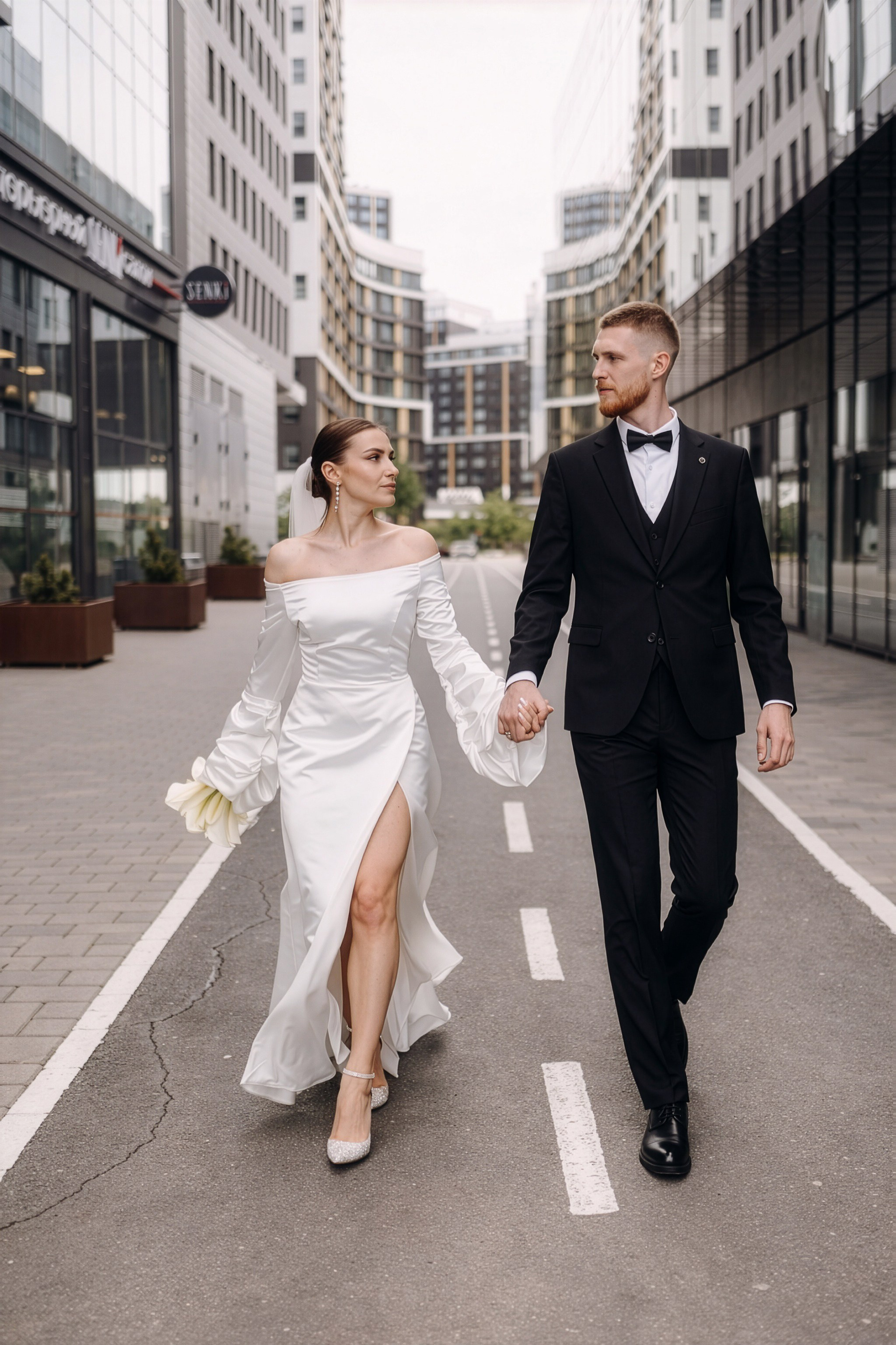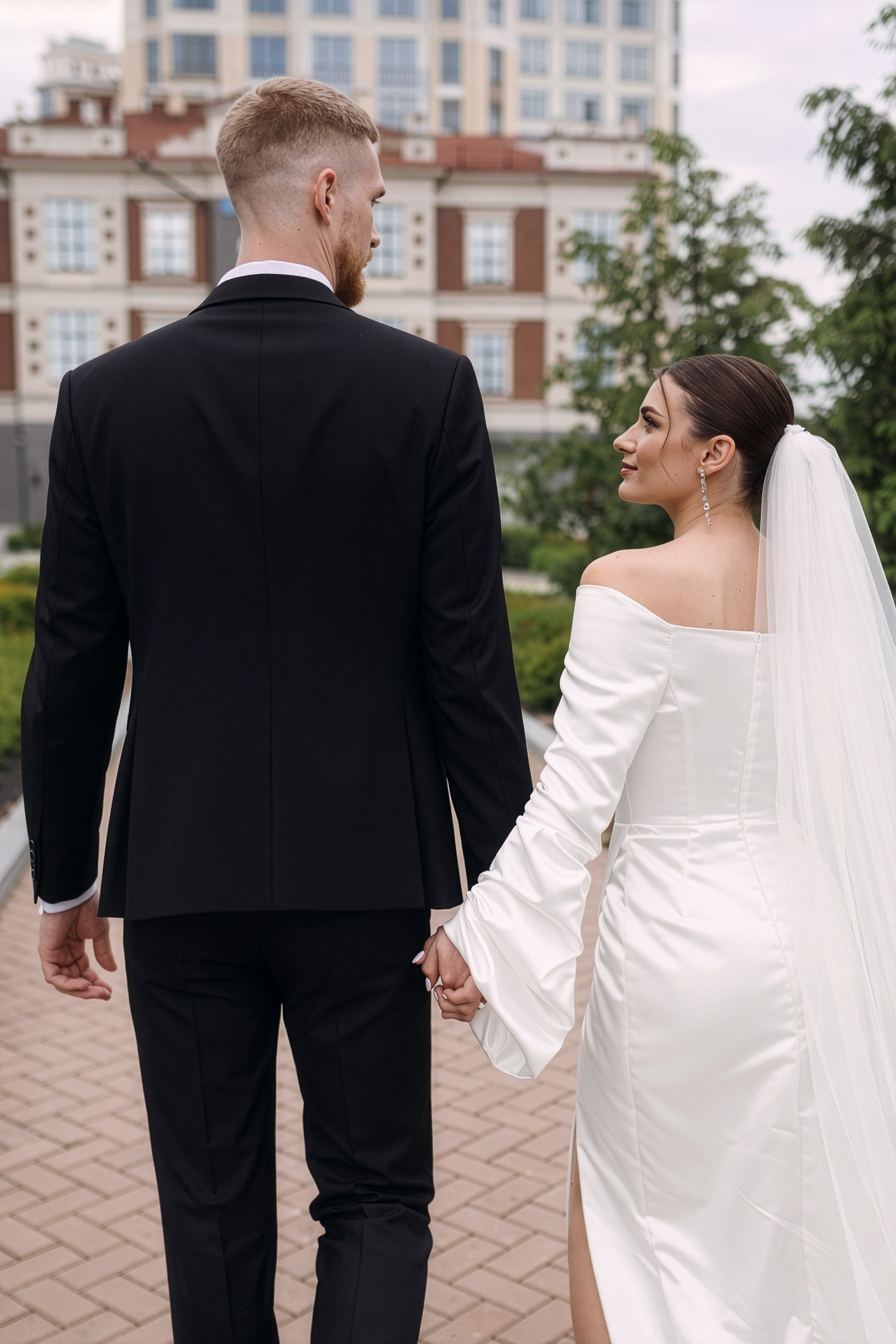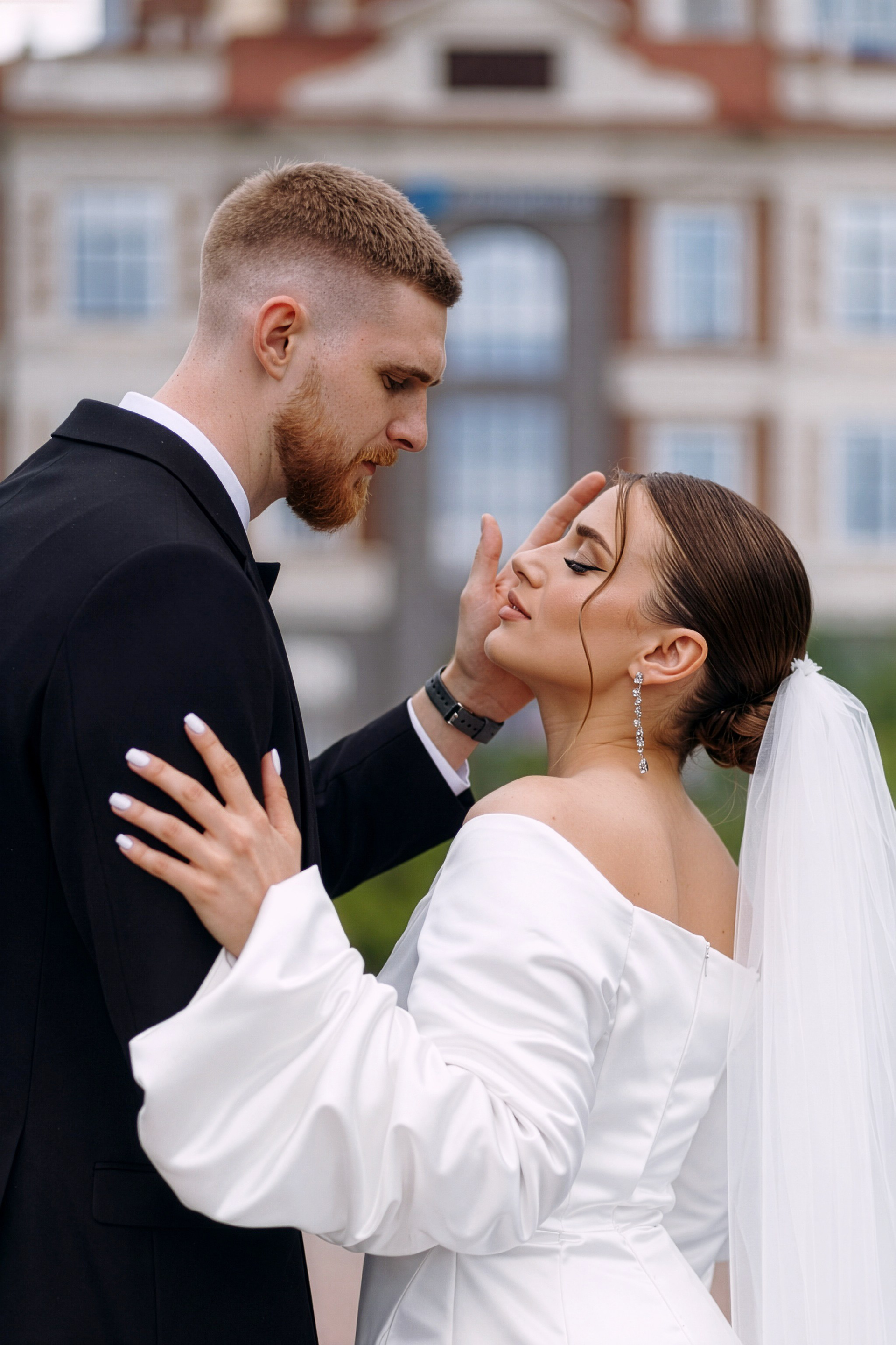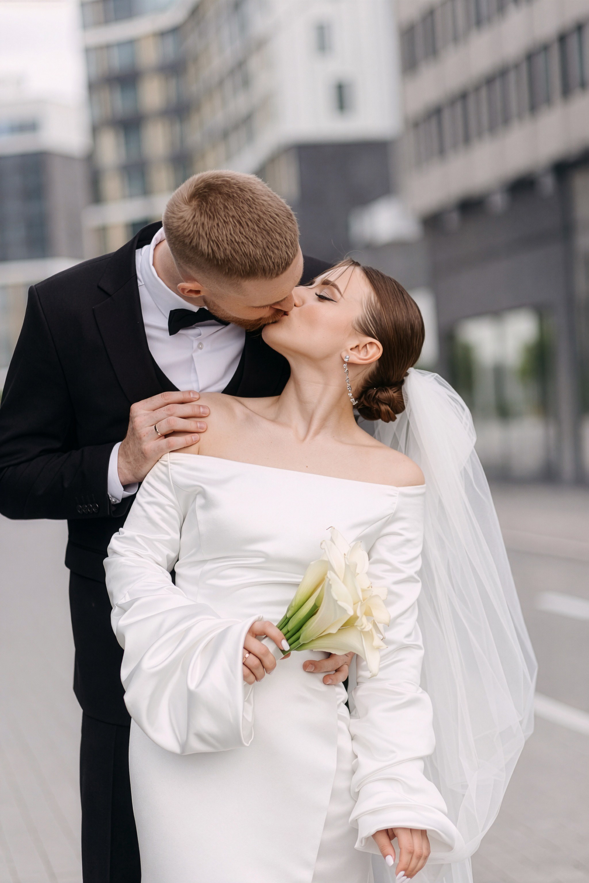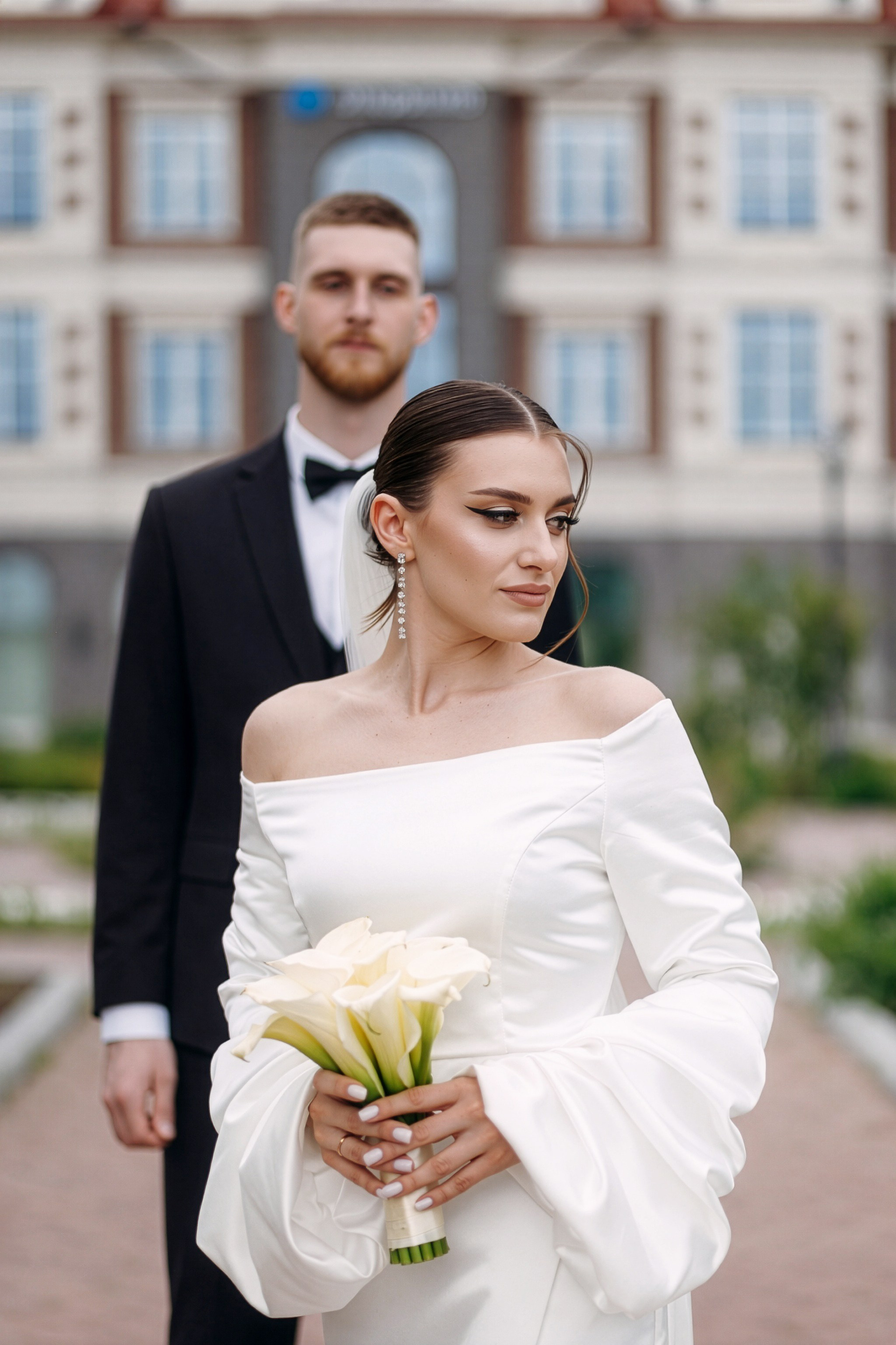 Для фотосессии Андрея и Татьяны мы выбрали знаковые локации с классической архитектурой, которые подчеркнули статность пары. В таких кадрах важен масштаб и чистота линий. Сочетание строгих фасадов города и нежности чувств молодоженов создало тот самый контраст, который делает свадебный альбом по-настоящему стильным.