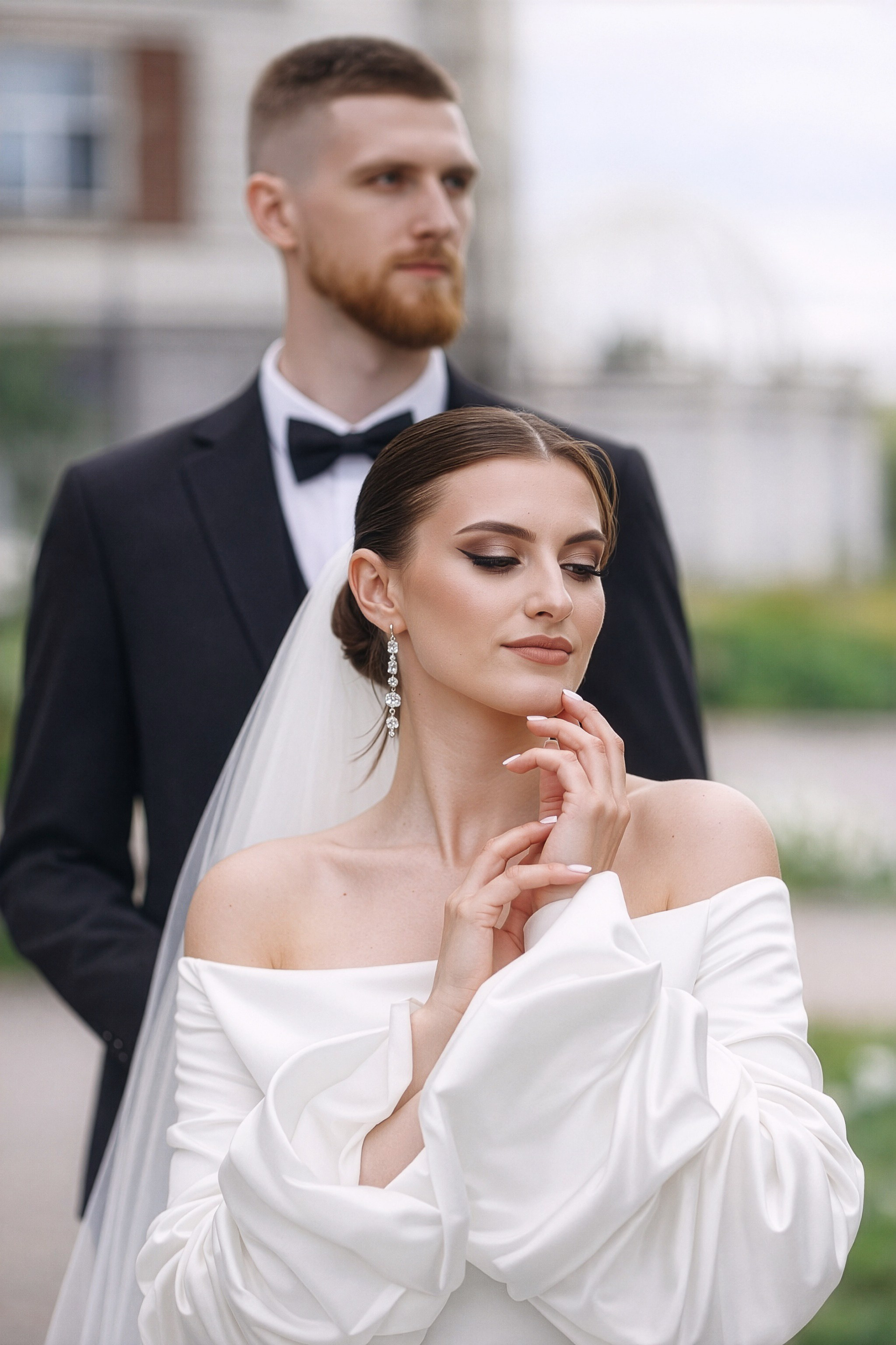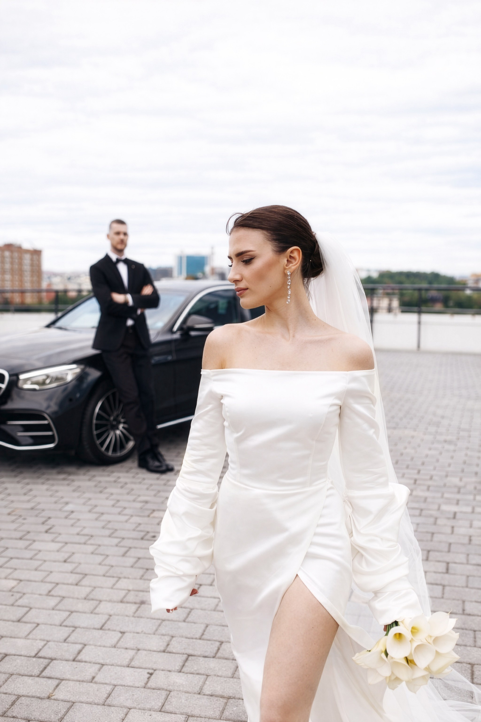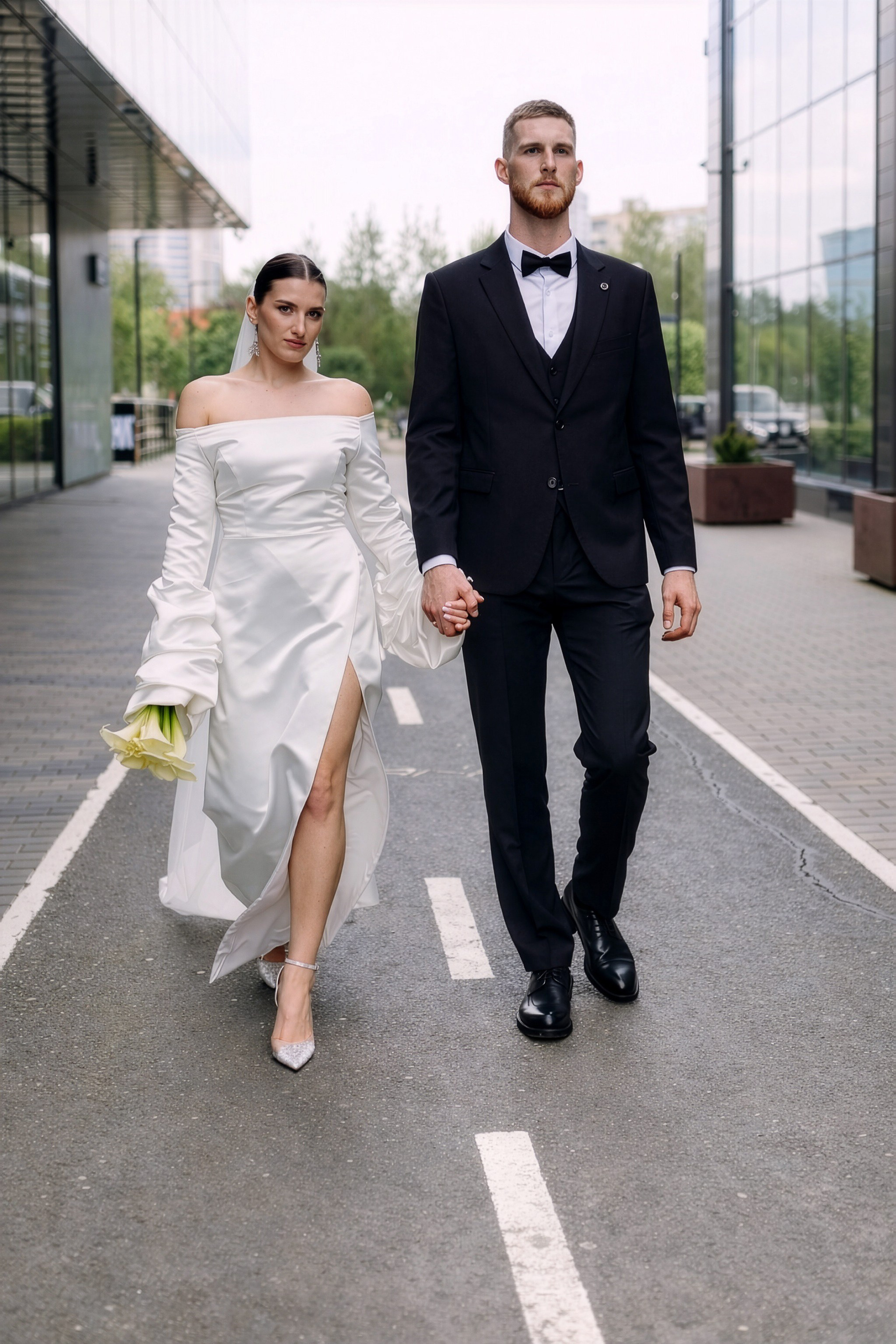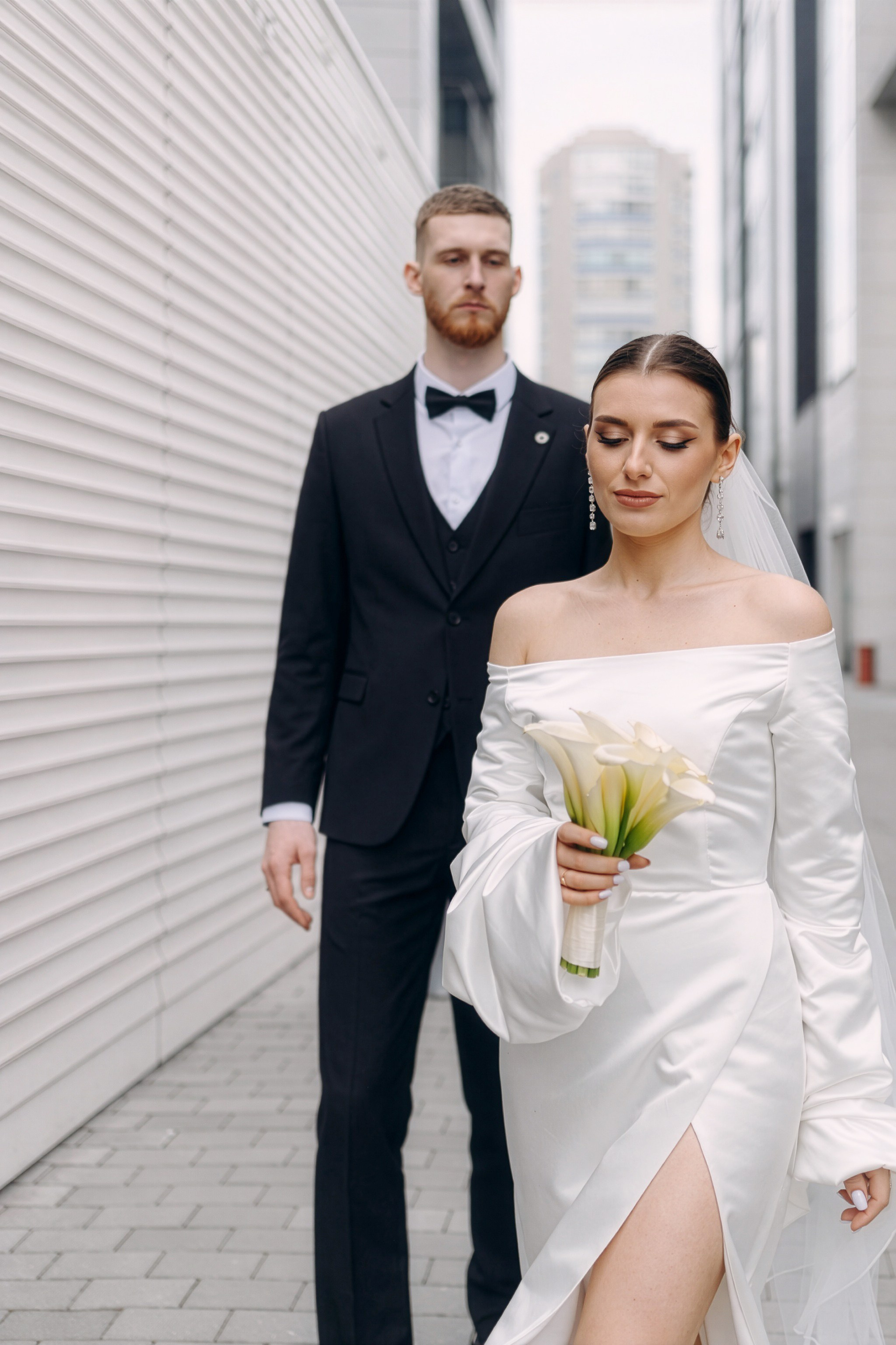 Для фотосессии Андрея и Татьяны мы выбрали знаковые локации с классической архитектурой, которые подчеркнули статность пары. В таких кадрах важен масштаб и чистота линий. Сочетание строгих фасадов города и нежности чувств молодоженов создало тот самый контраст, который делает свадебный альбом по-настоящему стильным.
