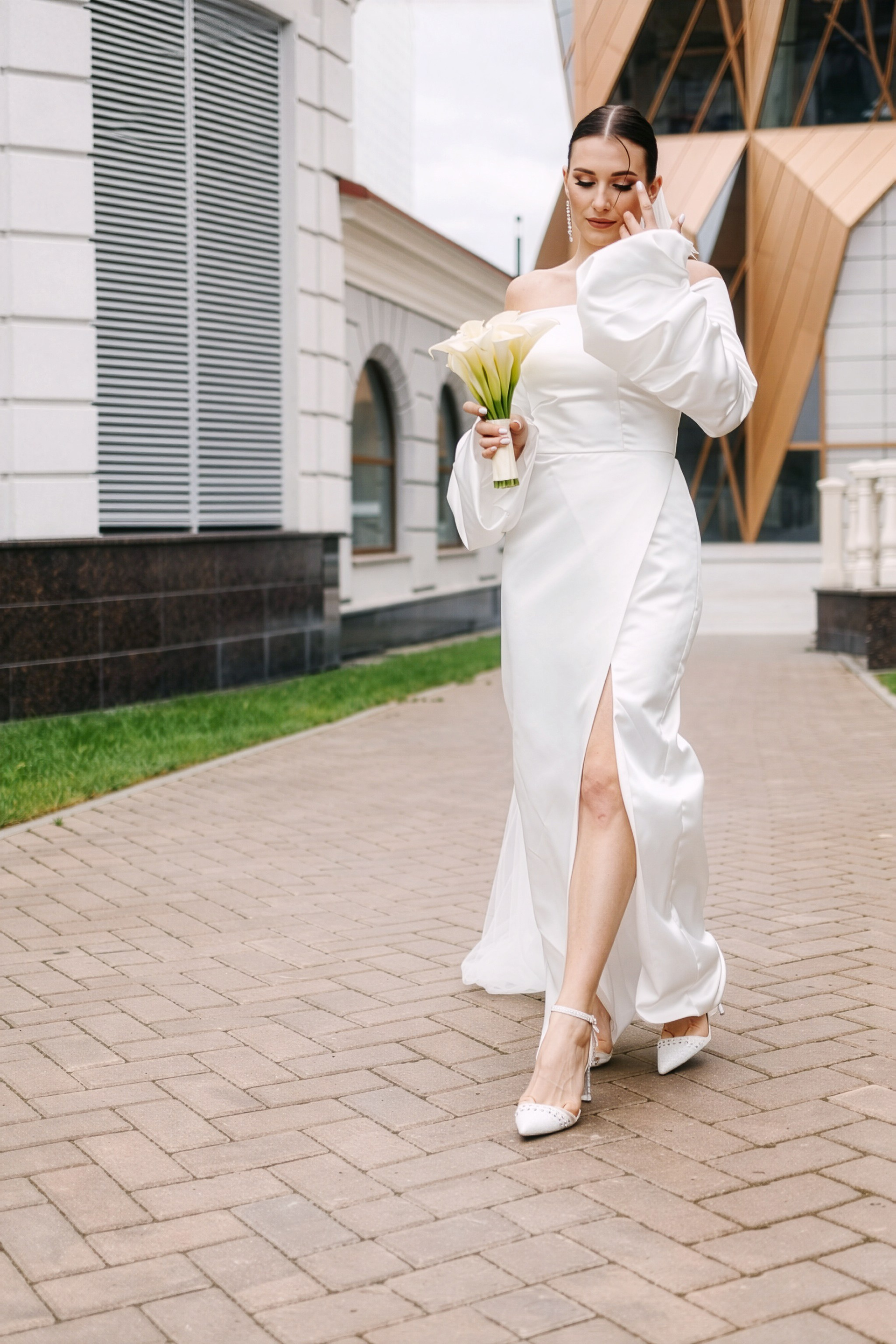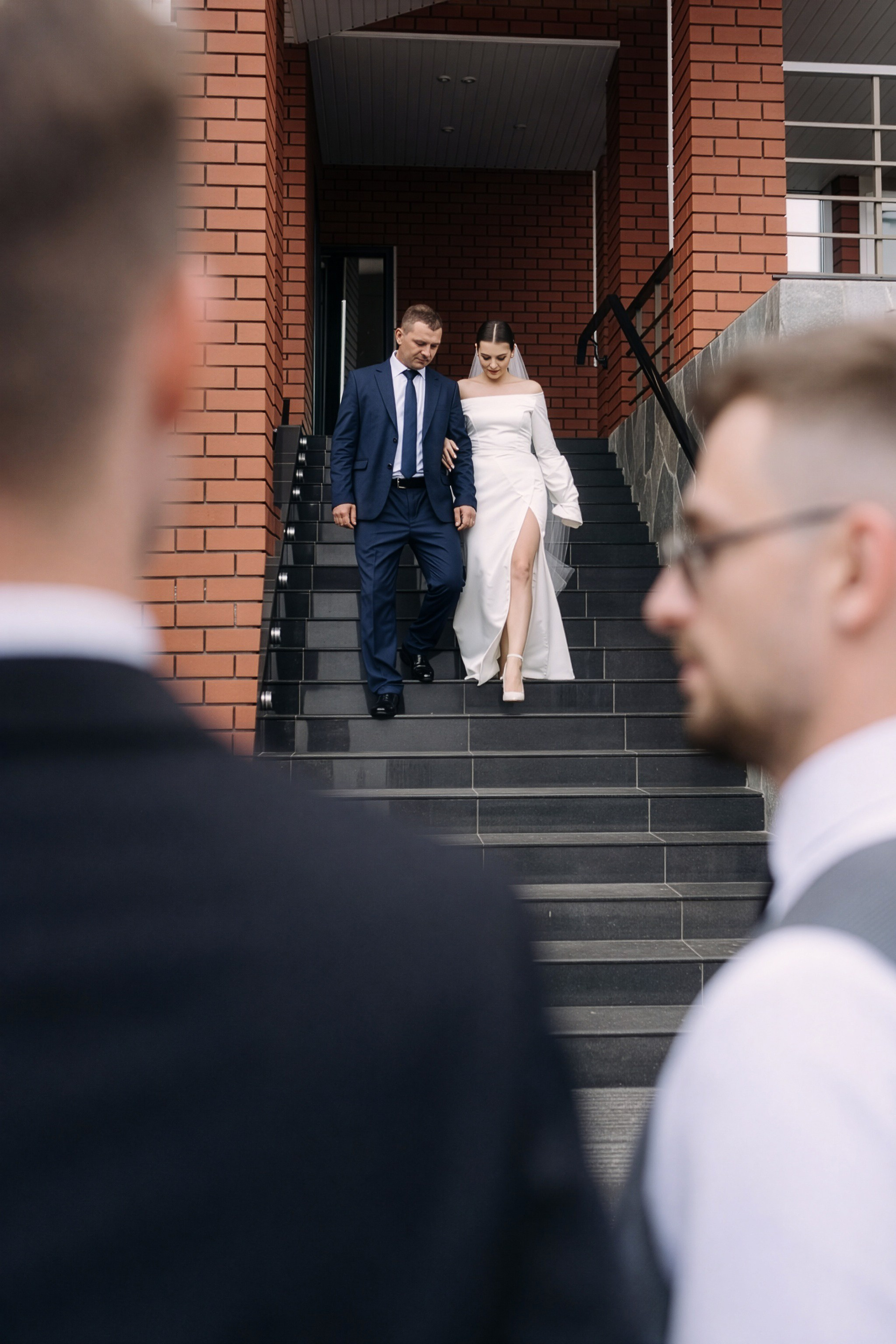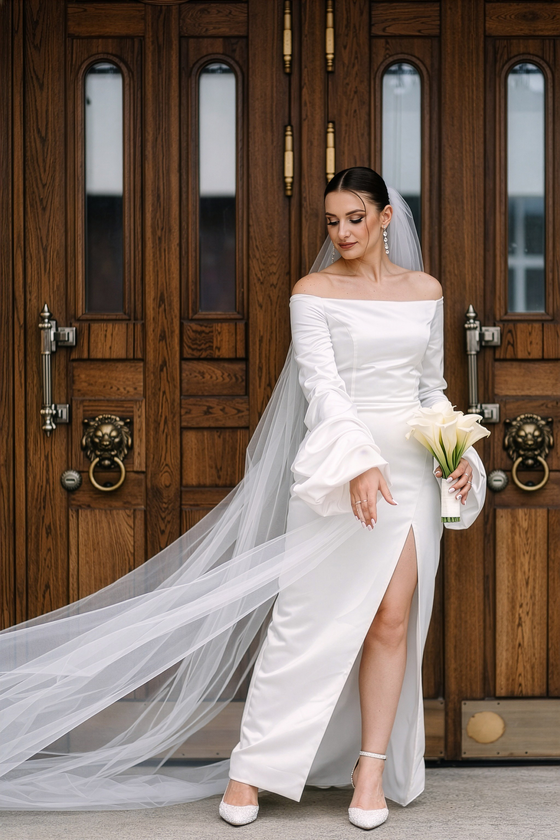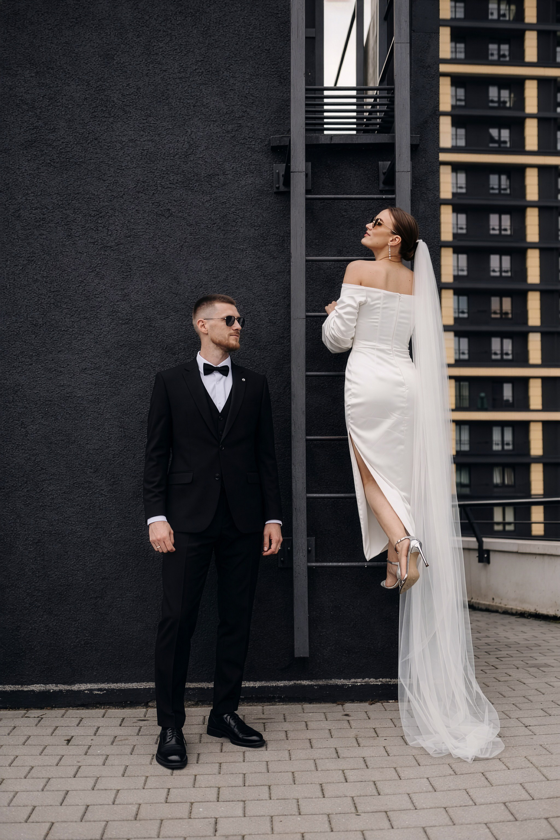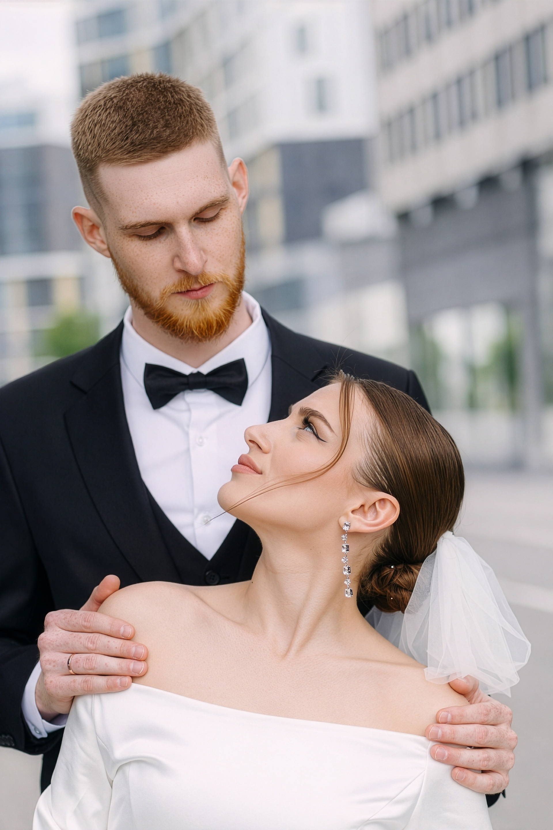 Для фотосессии Андрея и Татьяны мы выбрали знаковые локации с классической архитектурой, которые подчеркнули статность пары. В таких кадрах важен масштаб и чистота линий. Сочетание строгих фасадов города и нежности чувств молодоженов создало тот самый контраст, который делает свадебный альбом по-настоящему стильным.