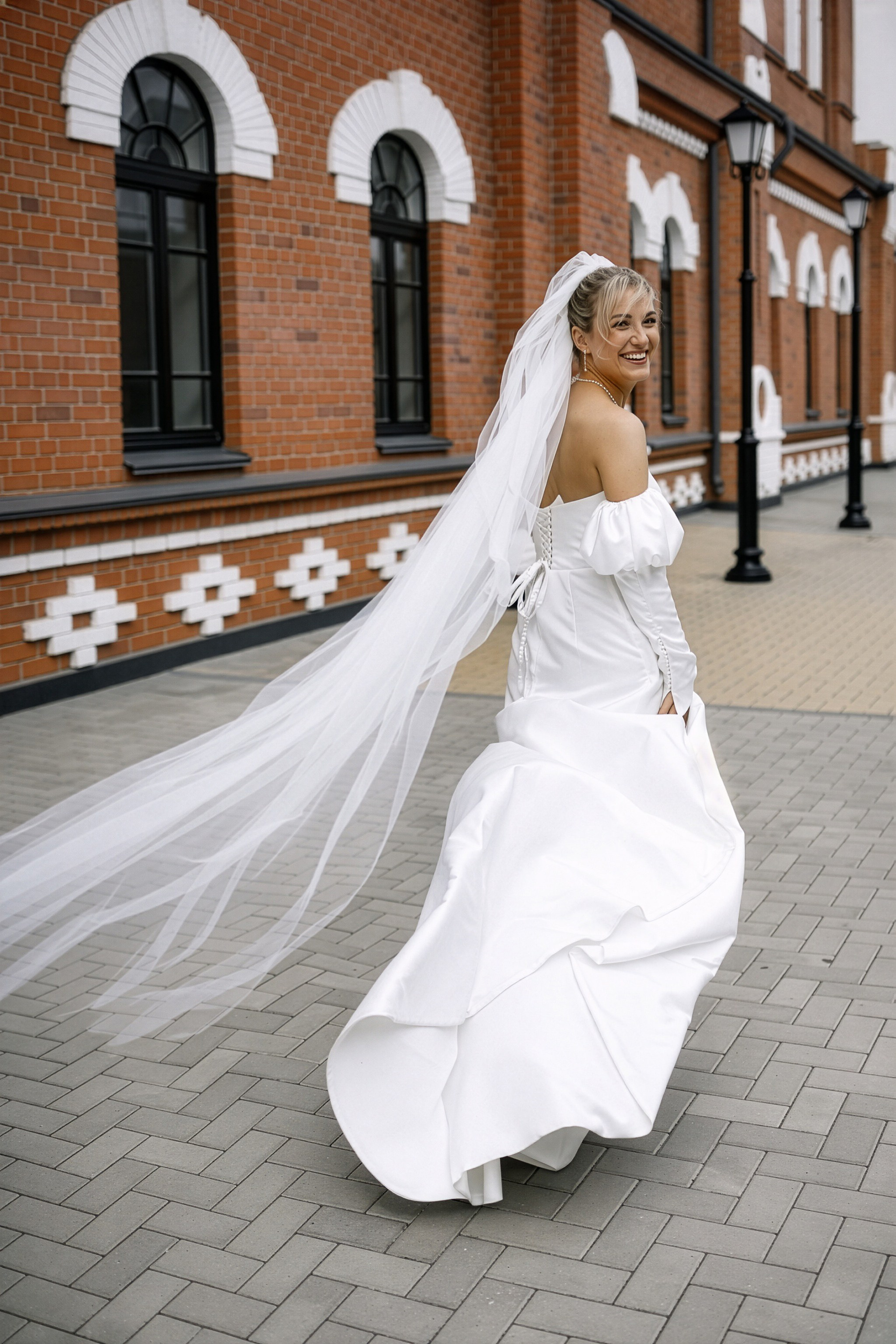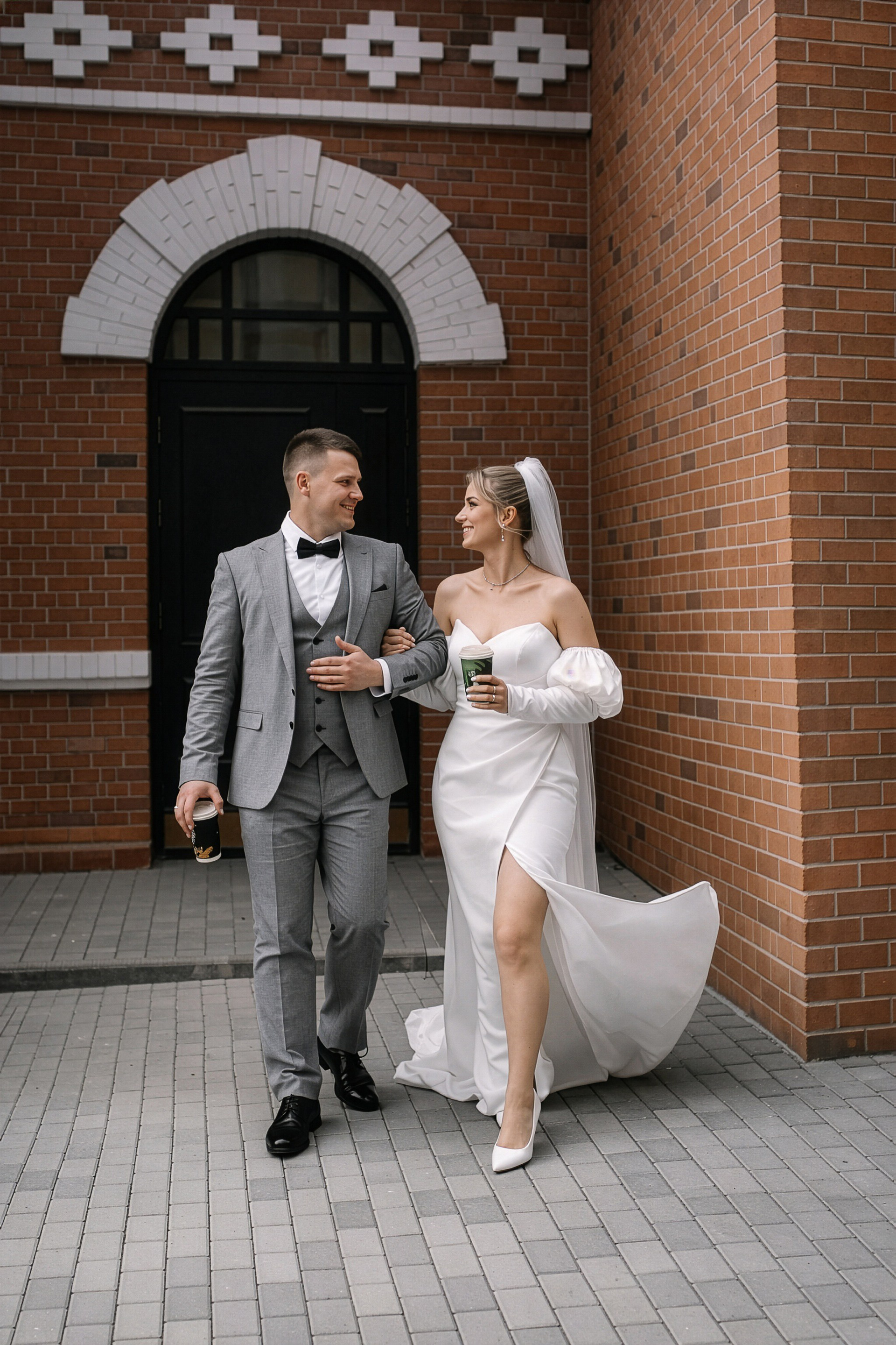 Вторая часть фотосессии Дмитрия и Анны прошла в исторических дворах Екатеринбурга. Это решение позволило добавить в свадебную серию тепла и текстур. Старая кирпичная кладка, тихие аллеи и архитектура прошлого века создают потрясающий контраст с современными образами пары.
