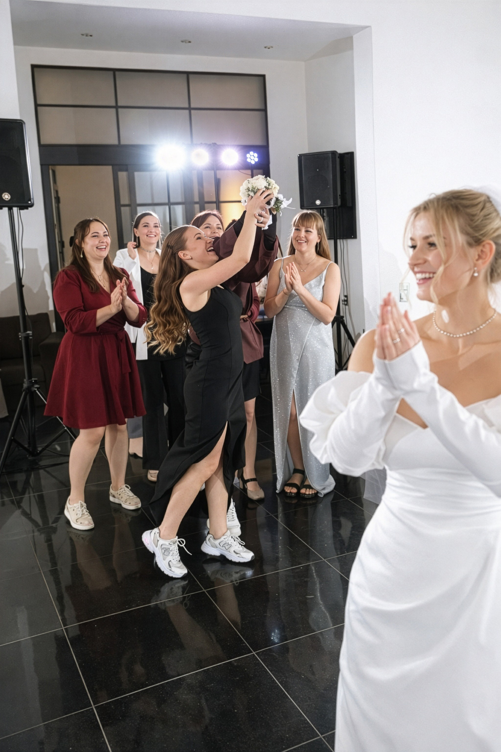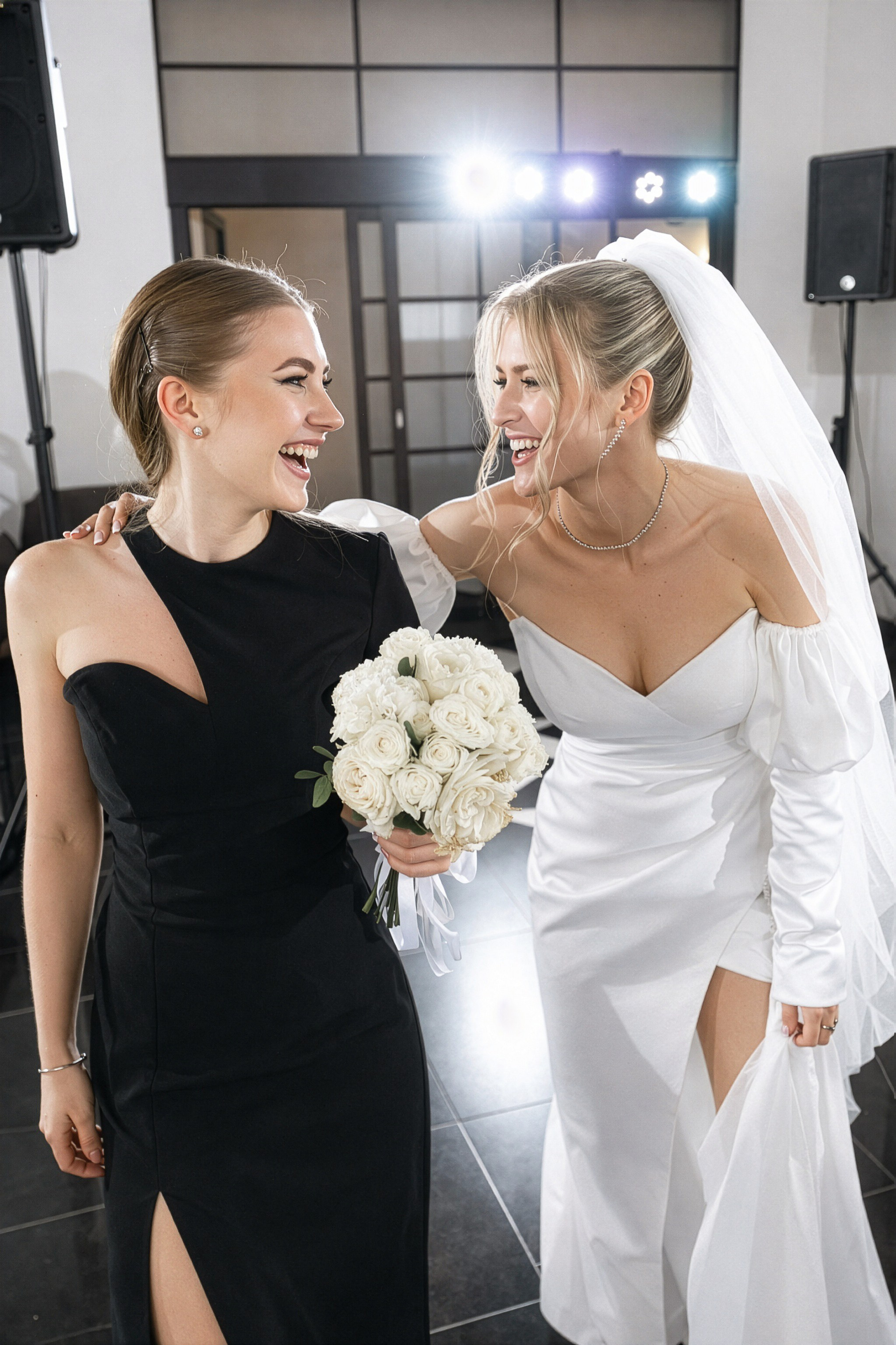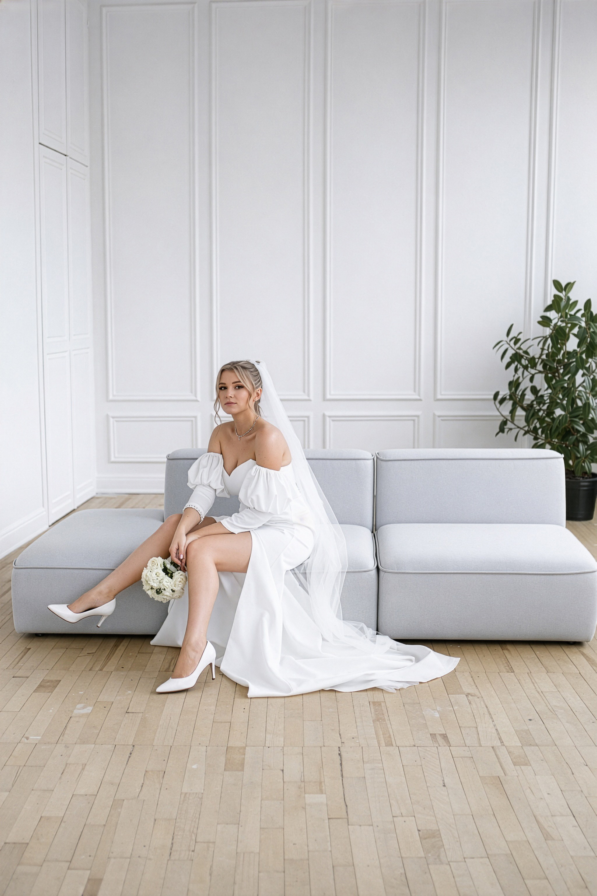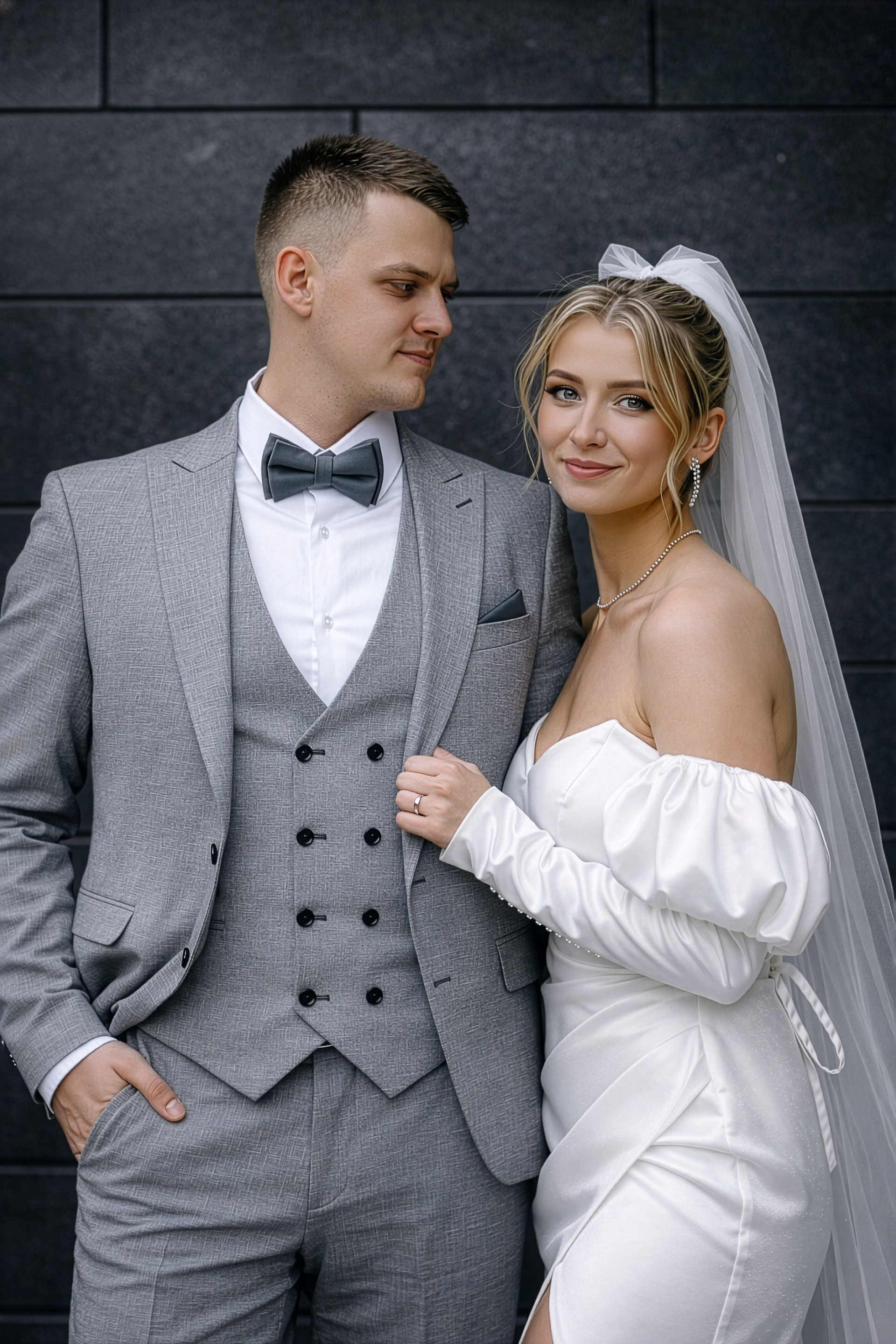 - Игра на контрастах: Нежность свадебного платья на фоне брутальных городских стен.
