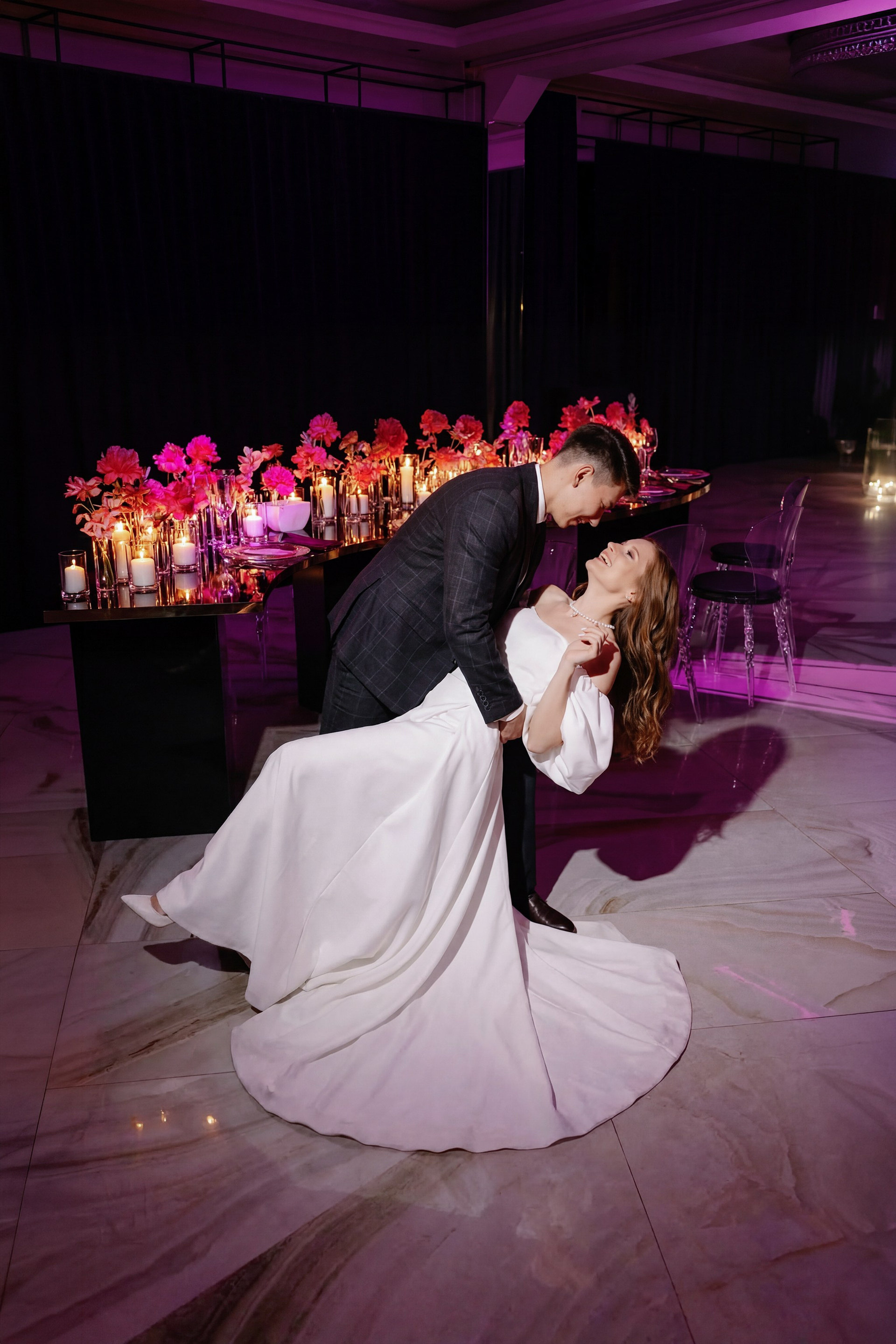 - Свадебный банкет в OneLoft. Площадка OneLoft позволила реализовать формат уютной и драйвовой городской вечеринки. Высокие потолки и фактурные кирпичные стены стали отличным фоном для танцев, поздравлений и яркого финала свадебного дня.
